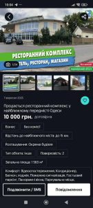Оголошення про продаж ресторанного комплексу в с. Холодна Балка/Скріни з сайту “Дом.ріа”