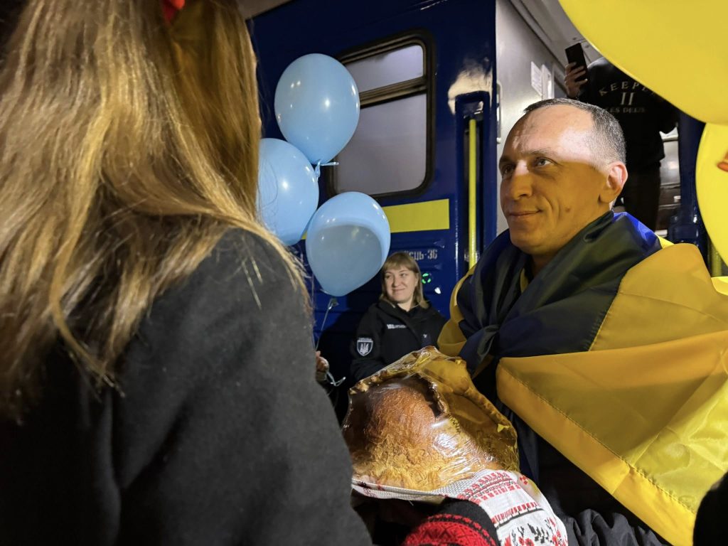 Жовто-блакитні прапори, квіти, кульки та коровай: у місті Подільськ на Одещині 6 листопада відбулася зустріч громадою з військовим Євгеном Ясинчуком, який повернувся додому після тривалого перебування в російському полоні.