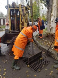Також регулярно виконуються роботи з розчищення дощоприймачів і зливових колекторів, розташованих по всьому місту. У роботах з розчищення канав і промивання зливових колекторів задіяно важку техніку КП «Міські дороги»: екскаватори зі спеціальною насадкою, автогрейдери, МАЗи і високонапірна гідравлічна установка на базі автомобіля МАН для промивання перепускних труб.