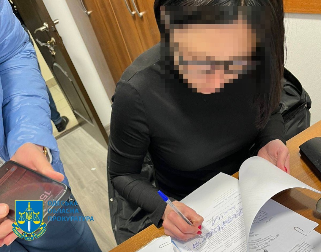Затримана адвокатка Олега Мальцева Ольга Панченко підписуж протокол обшуку. Фото – Одеська обласна прокуратура