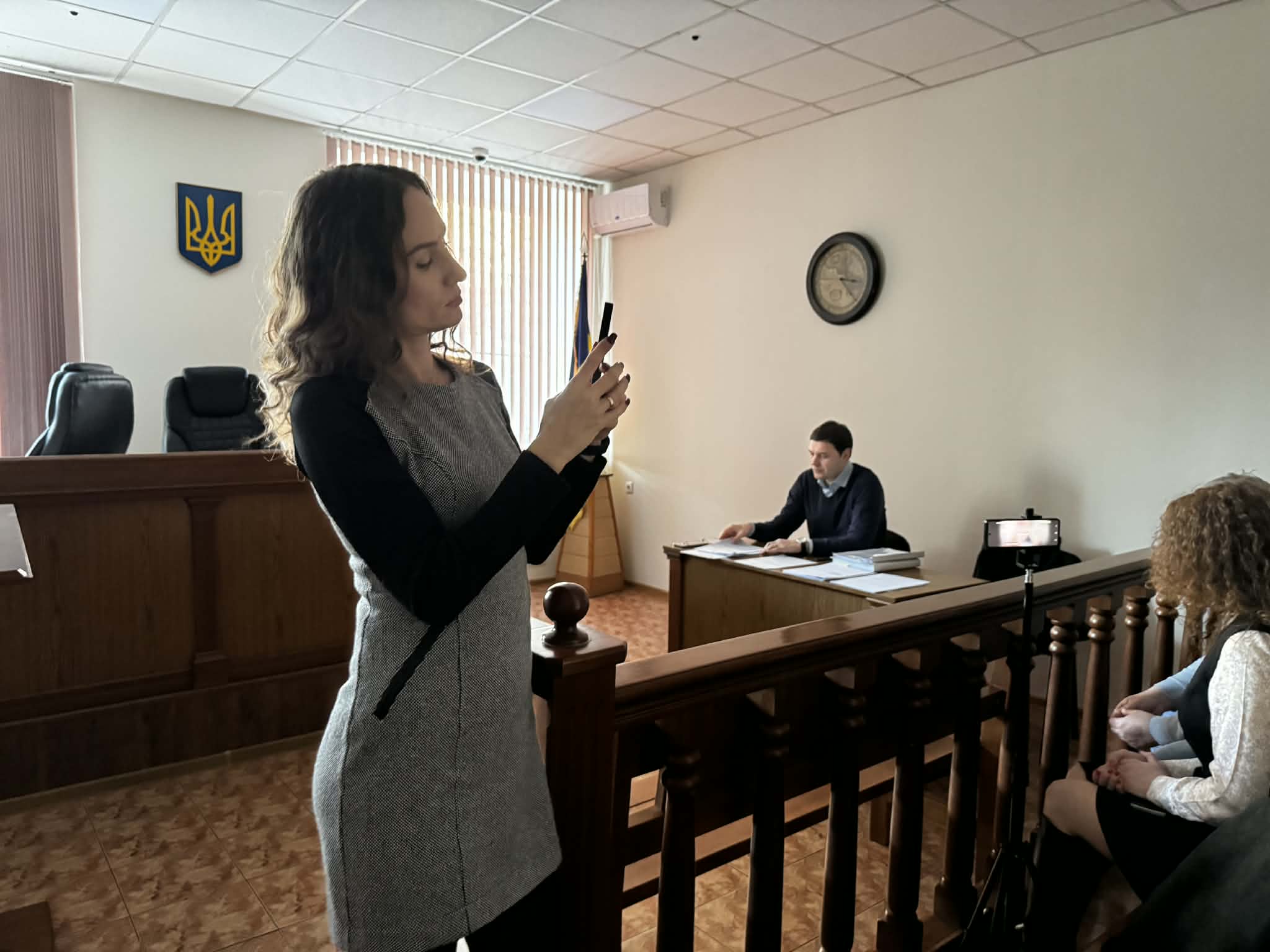 Представниця сторони захисту, “медійниця” Мальцева, фіксує присутніх в засіданні слухачів, які прийшли висвітлювати процес