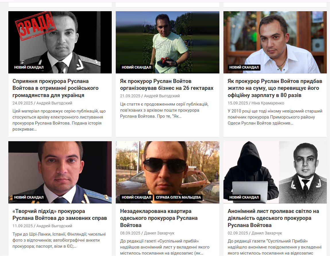 Редакція СИЛИ ГРОМАД нарахувала на сторінці видання “Суспільний прибій”, який належить угрупуванню Олега Мальцева, близько 120 матеріалів, які можна розцінити як послідовний тиск на сторону обвинувачення. З них близько 30 можна трактувати як цілеспрямоване переслідування прокурора по справі Руслана Войтова. А після його усунення з судового процесу псевдомедійники перейшли на цькування ішого прокурора, – Михайла Ульянова.