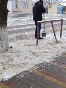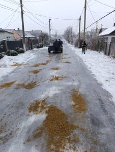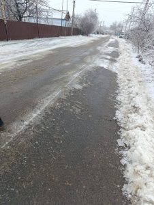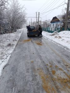 Тому вулиці селища підсипають сумішшю з піску й солі, аби жителі не зазнавали травм на дорогах і тротуарах.