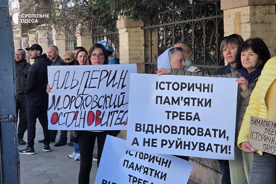 На акцію вийшли близько 100 одеситів. Люди тримали плакати з написами про необхідність збереження пам’яток архітектури.