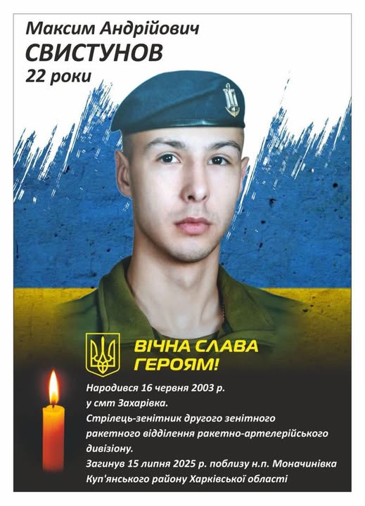 15 липня 2025 року, під час виконання бойового завдання поблизу населеного пункту Моначинівка Харківської області, життя Максима обірвалося внаслідок жорстокого артилерійського обстрілу. Він загинув як справжній Воїн: не відступив, не злякався, залишився зі своїми побратимами до останньої миті. Він до кінця виконував свій обов’язок, прикриваючи тих, хто був поруч.